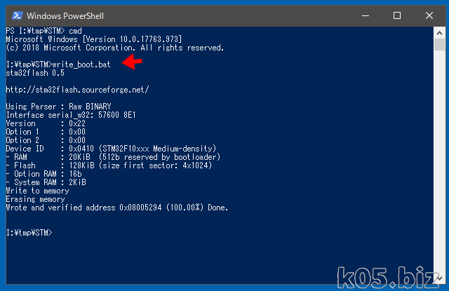 write_boot.bat を実行して、ブートローダーを書き込みます。
