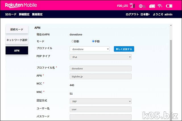【donedone】Rakuten WiFi Pocket を使う 2021/08/01 格安SIM donedone うまくいくと、こんな感じになります。 SIMを挿入 donedoneのSIMを挿入。UQとして認識するみたいですが、APNを設定しないと通信できません。 APNの設定 PDPタイプIPv4 プロファイル名donedone APNbiglobe.jp 認証方式PAP ユーザー名user パスワード APNは上記のように追加しました。 エントリープランの速度 下りは64Kbps程度です。上りは以前、計測した時より遅くなってるような・・。 スポンサーリンク 関連記事 【donedone】iPhone SE(初代)で使う 2021/07/28 iPhone4SでヨドバシSIMを使ってみる 2015/03/21 【SIM下駄】iPhone SEをiOS12=>12.0.1にアップデートしてみた 2018/10/092018/10/10 ワイヤレスゲート Wi-Fi+LTE SIMのWi-Fi接続について【ヨドバシSIM】 2015/07/10